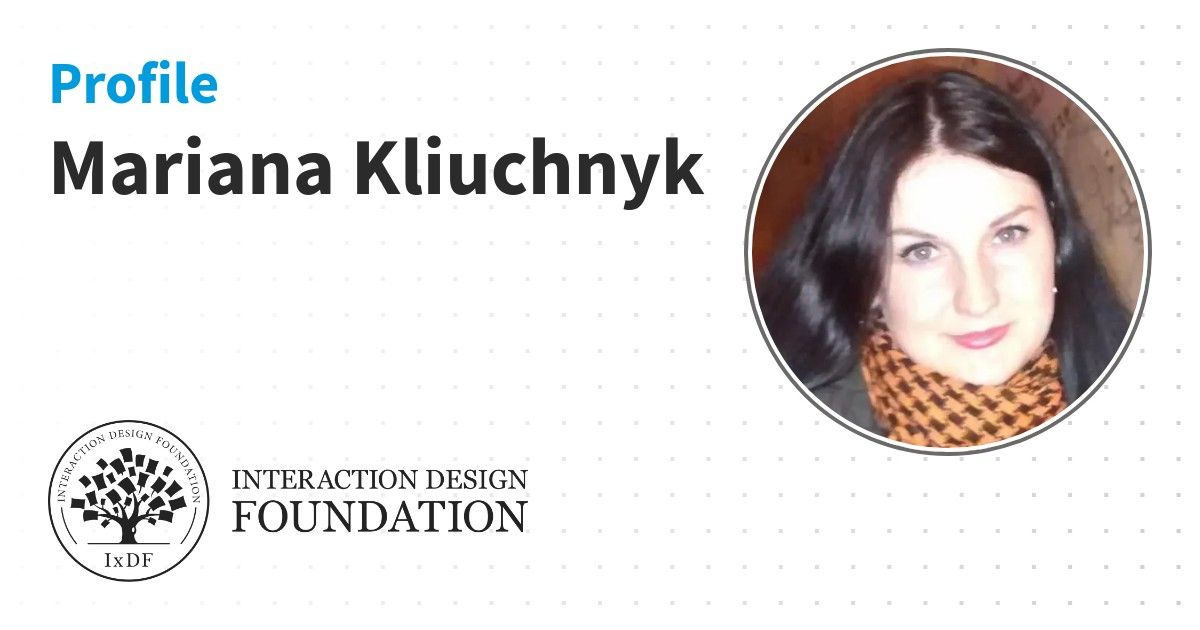 IxDF Course Certificates are awarded to Mariana Kliuchnyk in formal recognition of their coursework surpassing the rigorous benchmarks of exceptional performance established by the IxDF Educational Codex.
