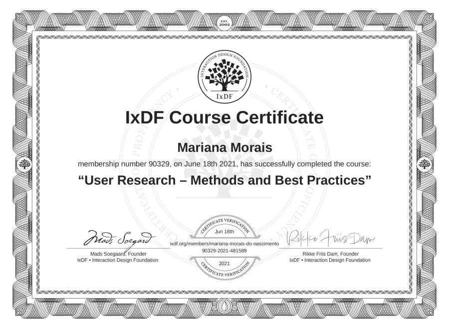 Mariana Morais's IxDF Course Certificate: User Research – Methods and Best Practices