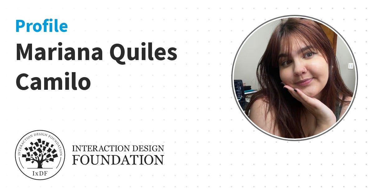IxDF Course Certificates are awarded to Mariana Quiles Camilo in formal recognition of their coursework surpassing the rigorous benchmarks of exceptional performance established by the IxDF Educational Codex.