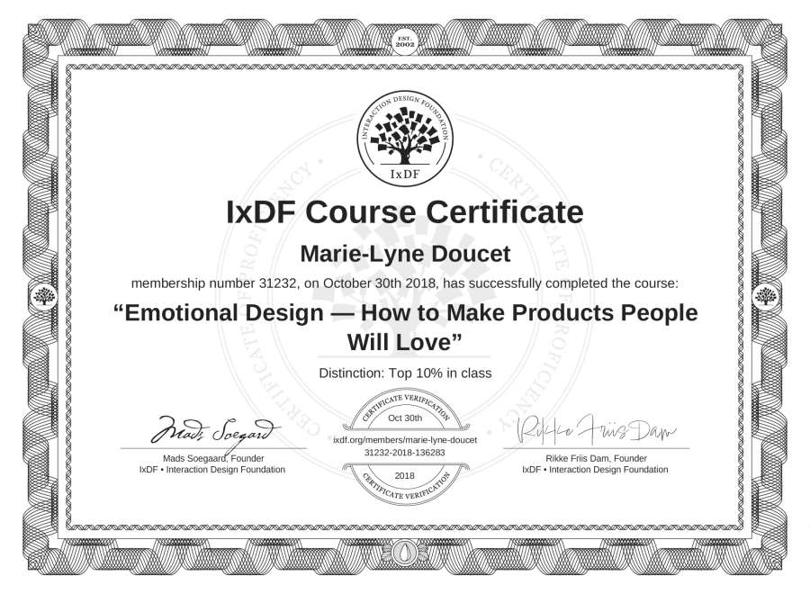 Marie-Lyne Doucet's IxDF Course Certificate: Emotional Design — How to Make Products People Will Love