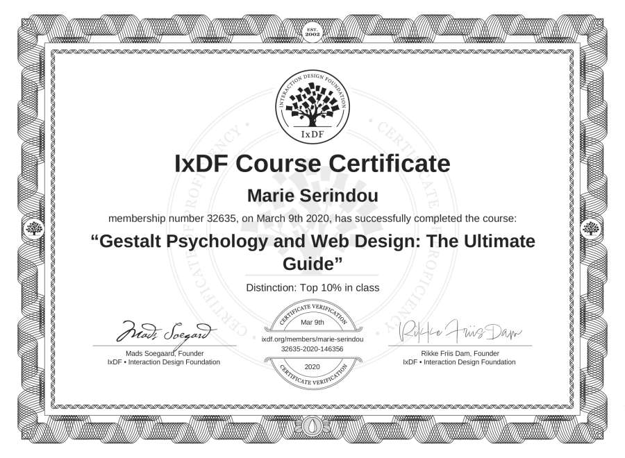Marie Serindou's IxDF Course Certificate: Gestalt Psychology and Web Design: The Ultimate Guide