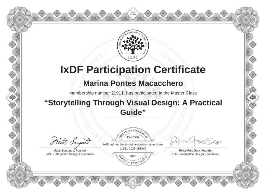 Marina Pontes Macacchero's IxDF Masterclass Certificate: Storytelling Through Visual Design: A Practical Guide