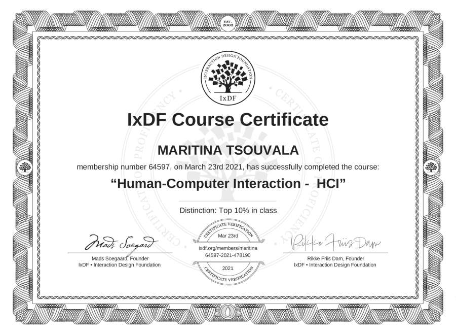 MARITINA TSOUVALA's IxDF Course Certificate: Human-Computer Interaction - HCI