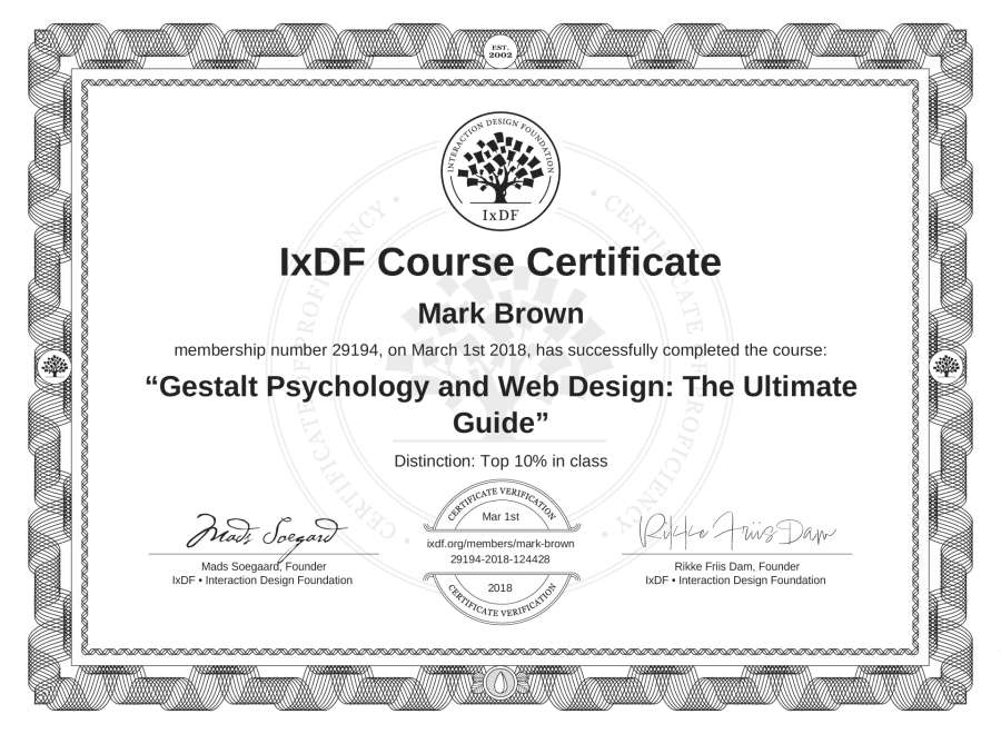 Mark Brown's IxDF Course Certificate: Gestalt Psychology and Web Design: The Ultimate Guide