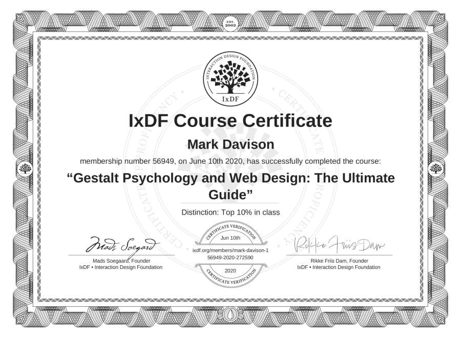 Mark Davison's IxDF Course Certificate: Gestalt Psychology and Web Design: The Ultimate Guide