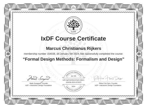 This IxDF Membership Certificate is issued to Marcus Christianus Rijkers in formal recognition of their membership of the IxDF, global leader in design education.