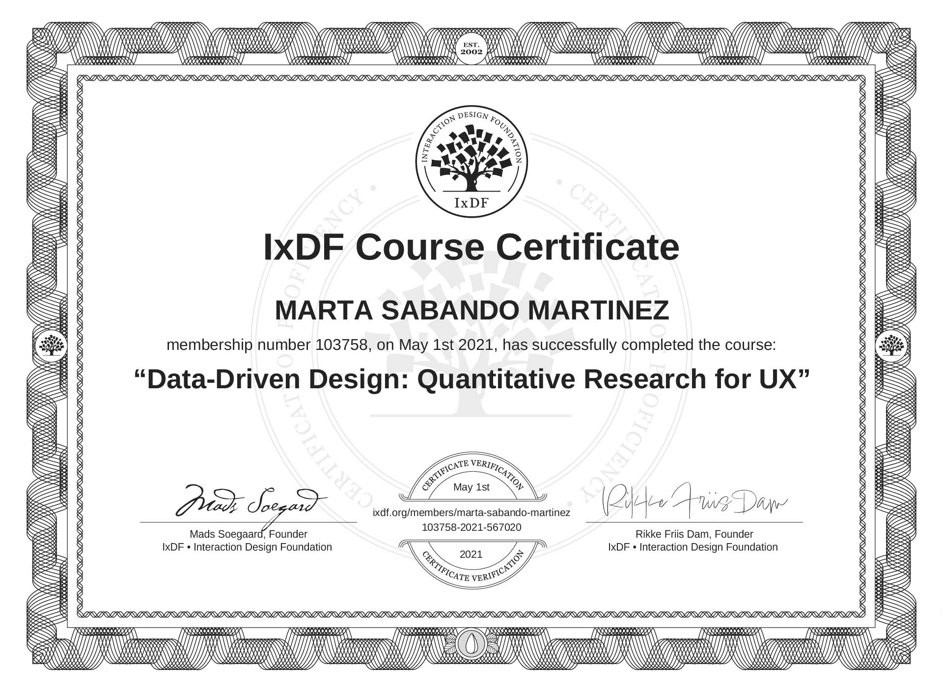 MARTA SABANDO MARTÍNEZ's IxDF Course Certificate: Data-Driven Design: Quantitative Research for UX