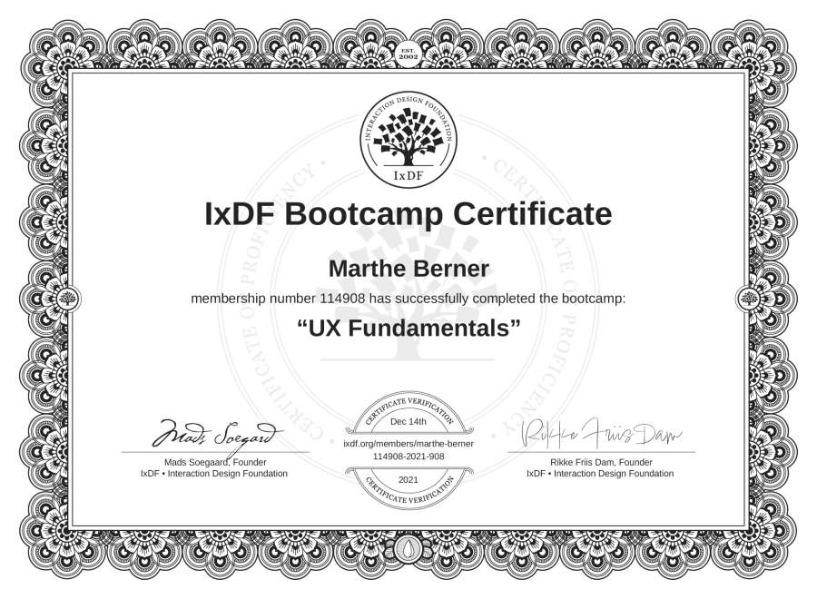 Marthe Berner's Bootcamp Certificate: UX Fundamentals