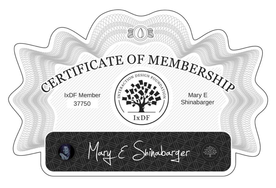 Page URL: https://www.interaction-design.org/members/mary-e-shinabarger/certificate/membership/P5F1hhFPn
