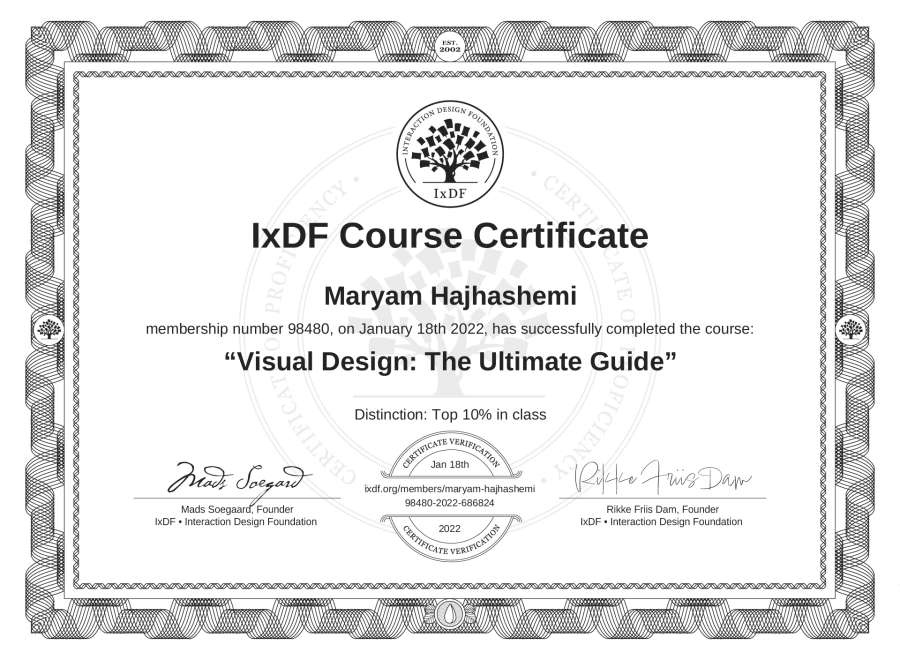 Maryam Hajhashemi's IxDF Course Certificate: Visual Design: The Ultimate Guide