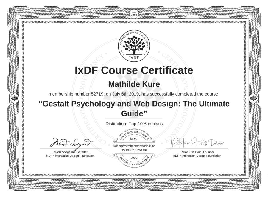 Mathilde Kure's IxDF Course Certificate: Gestalt Psychology and Web Design: The Ultimate Guide