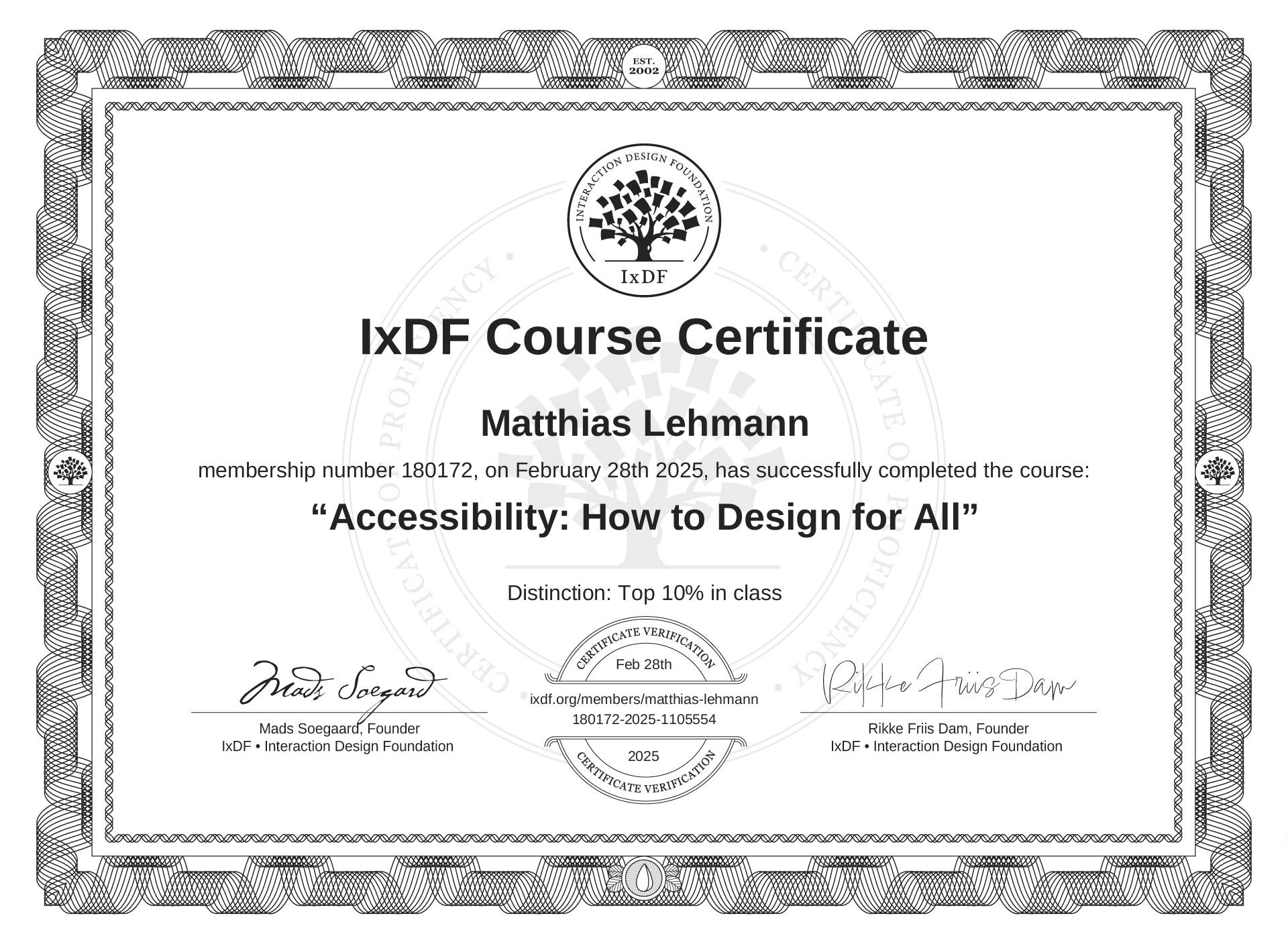 Matthias Lehmann's IxDF Course Certificate: Accessibility: How to Design for All