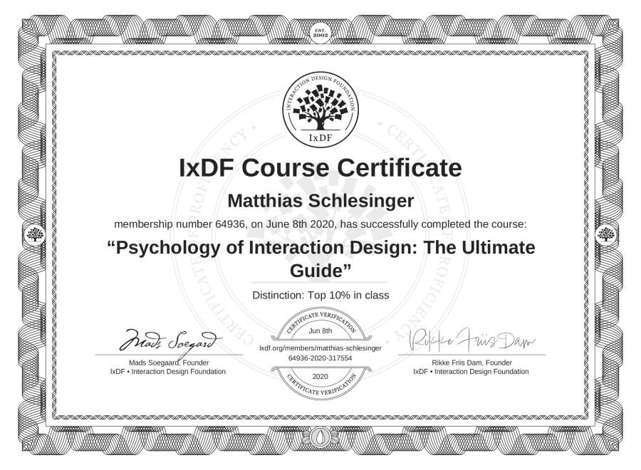 Matthias Schlesinger's IxDF Course Certificate: Psychology of Interaction Design: The Ultimate Guide