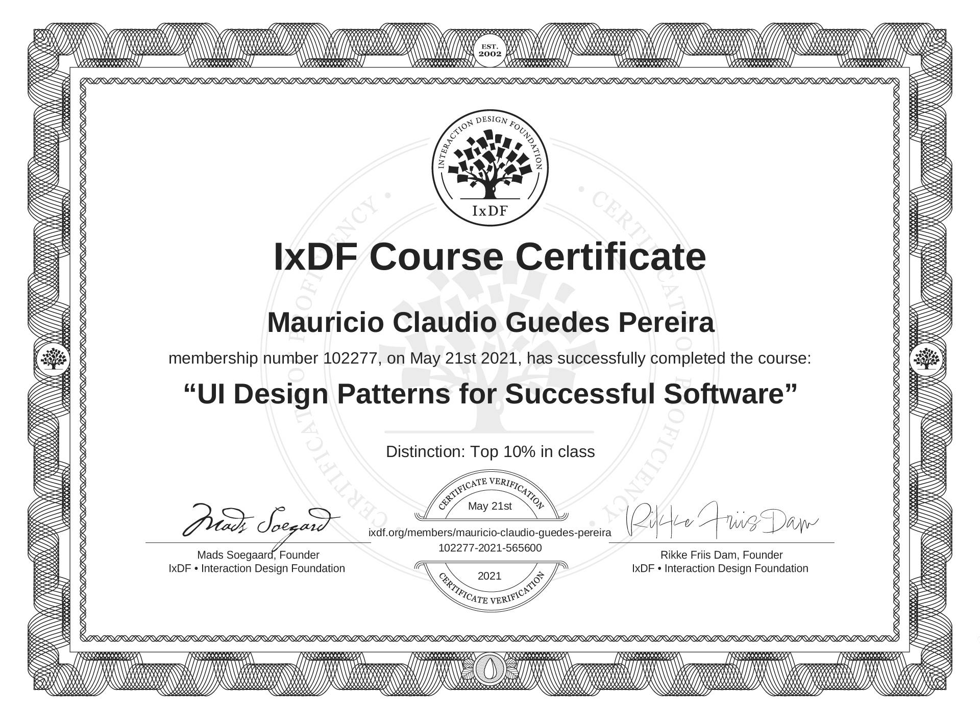 Maurício Cláudio Guedes Pereira's IxDF Course Certificate: UI Design Patterns for Successful Software
