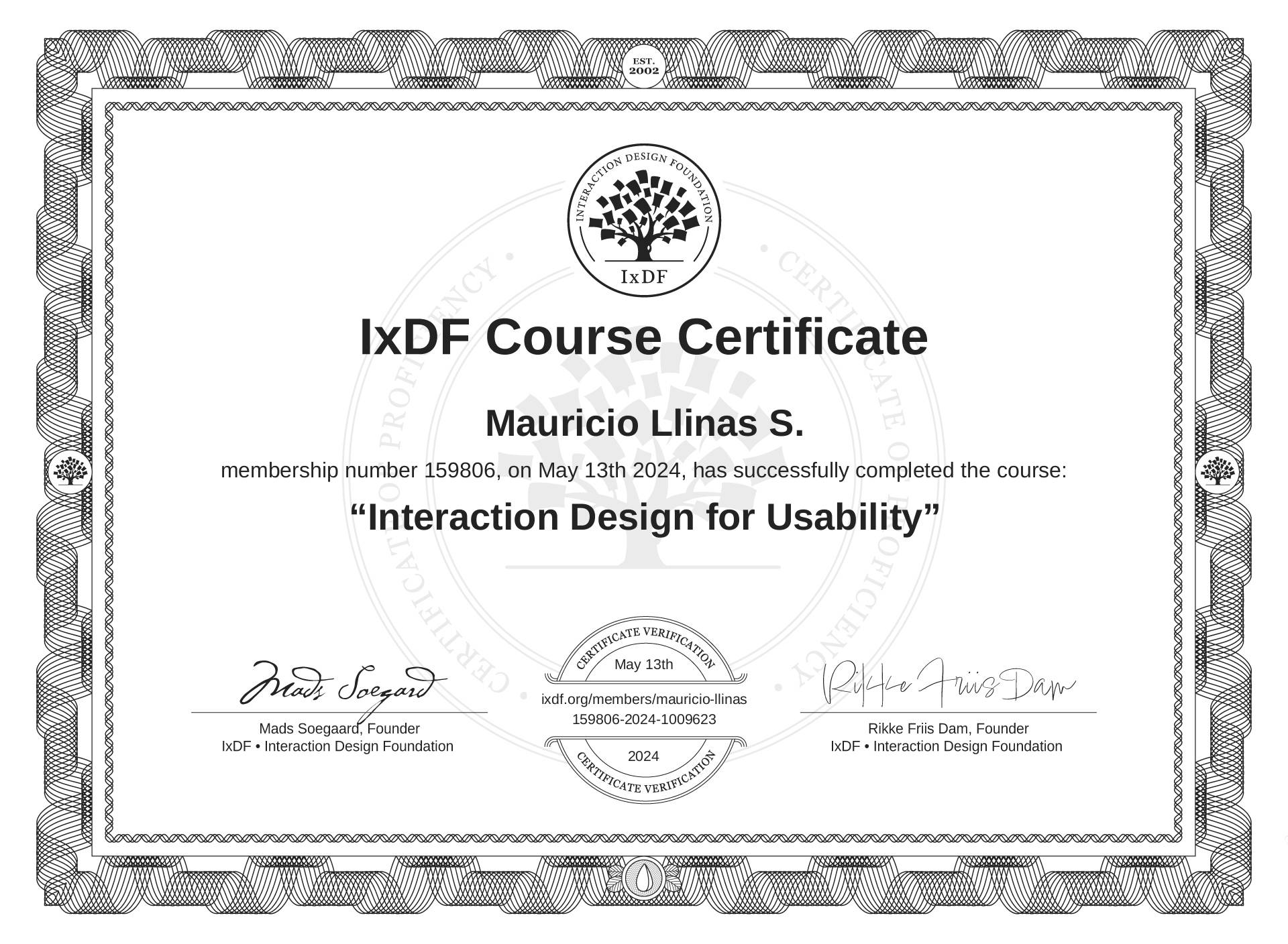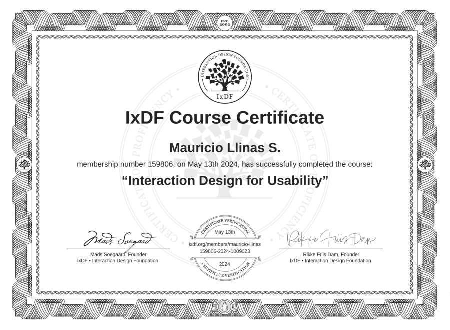 Mauricio Llinás S.'s IxDF Course Certificate: Interaction Design for Usability