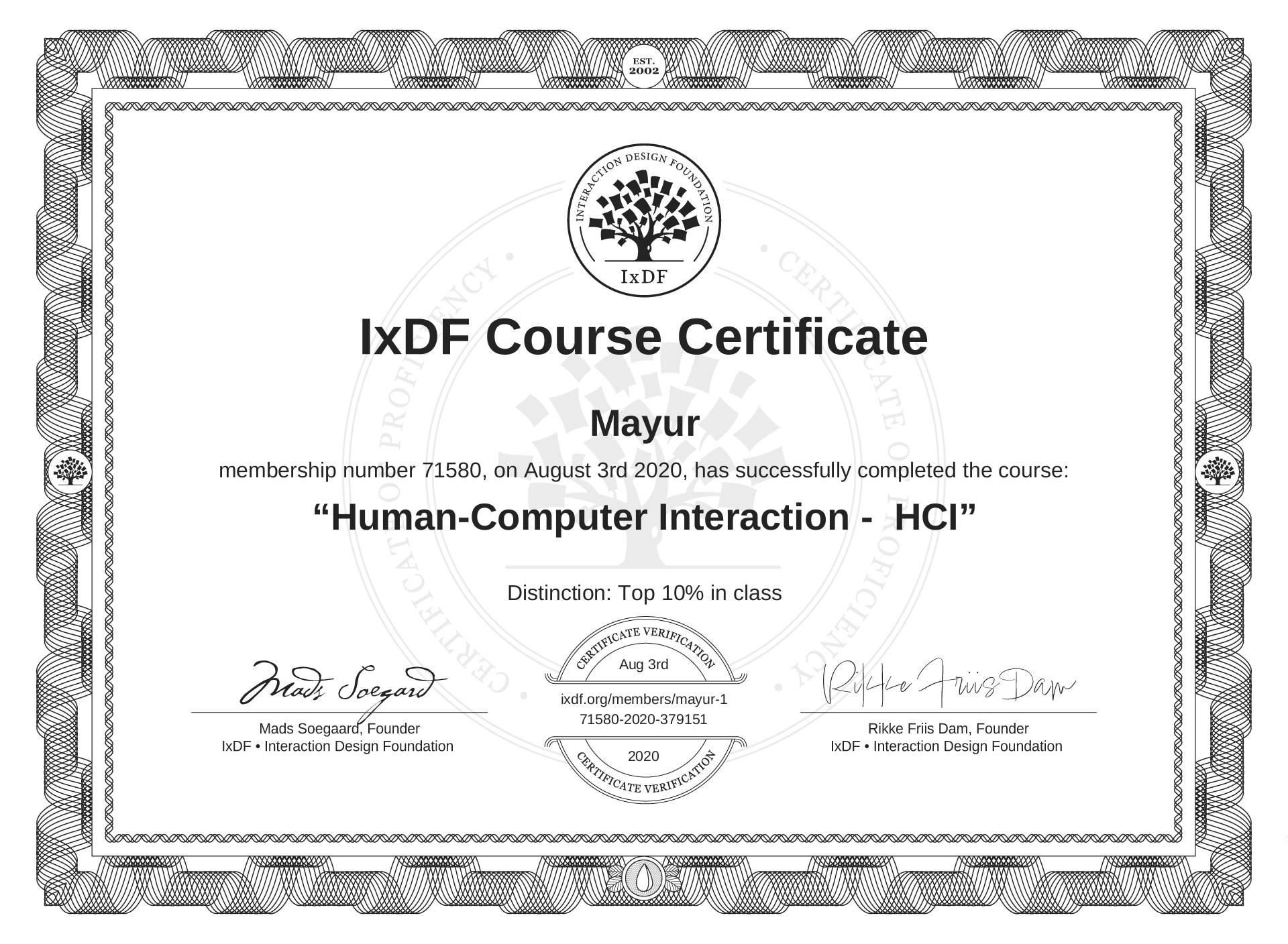 Mayur's IxDF Course Certificate: Human-Computer Interaction - HCI