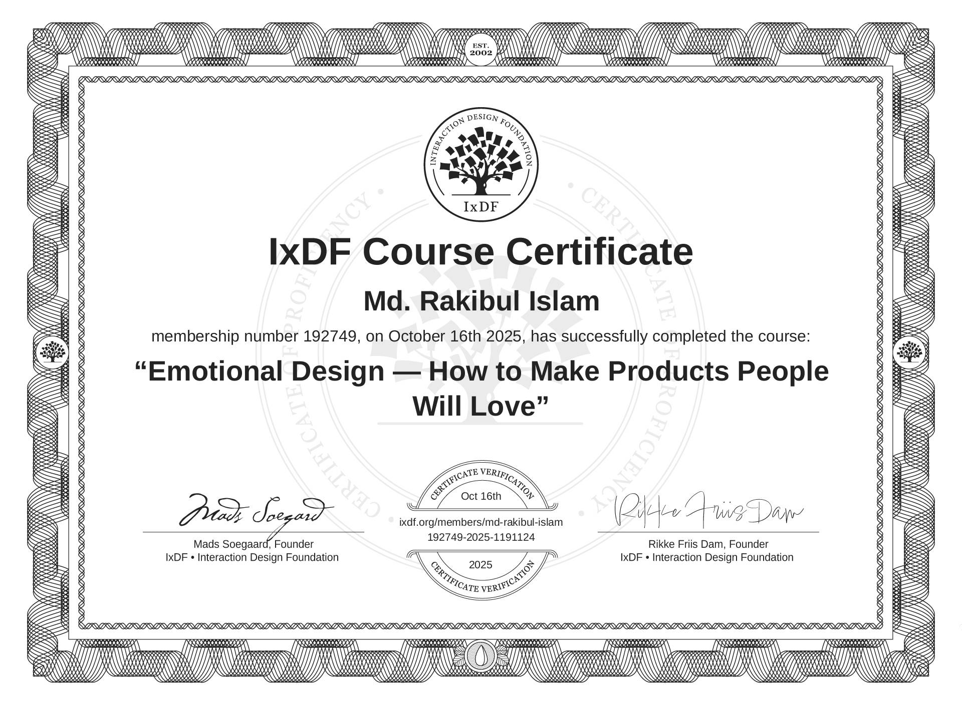 Md. Rakibul Islam's IxDF Course Certificate: Emotional Design — How to Make Products People Will Love