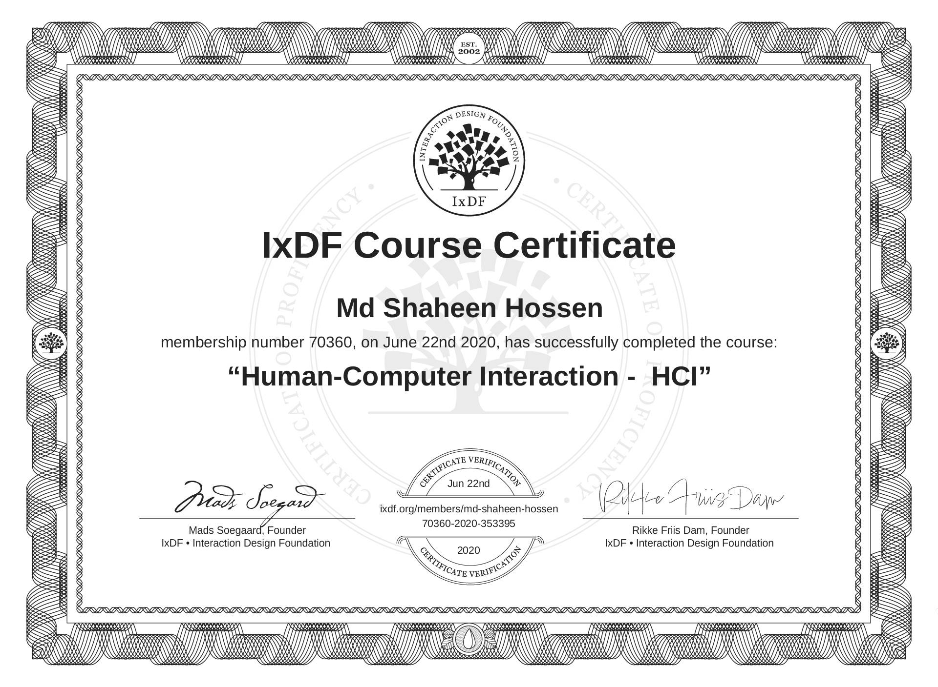 Md Shaheen Hossen's IxDF Course Certificate: Human-Computer Interaction - HCI