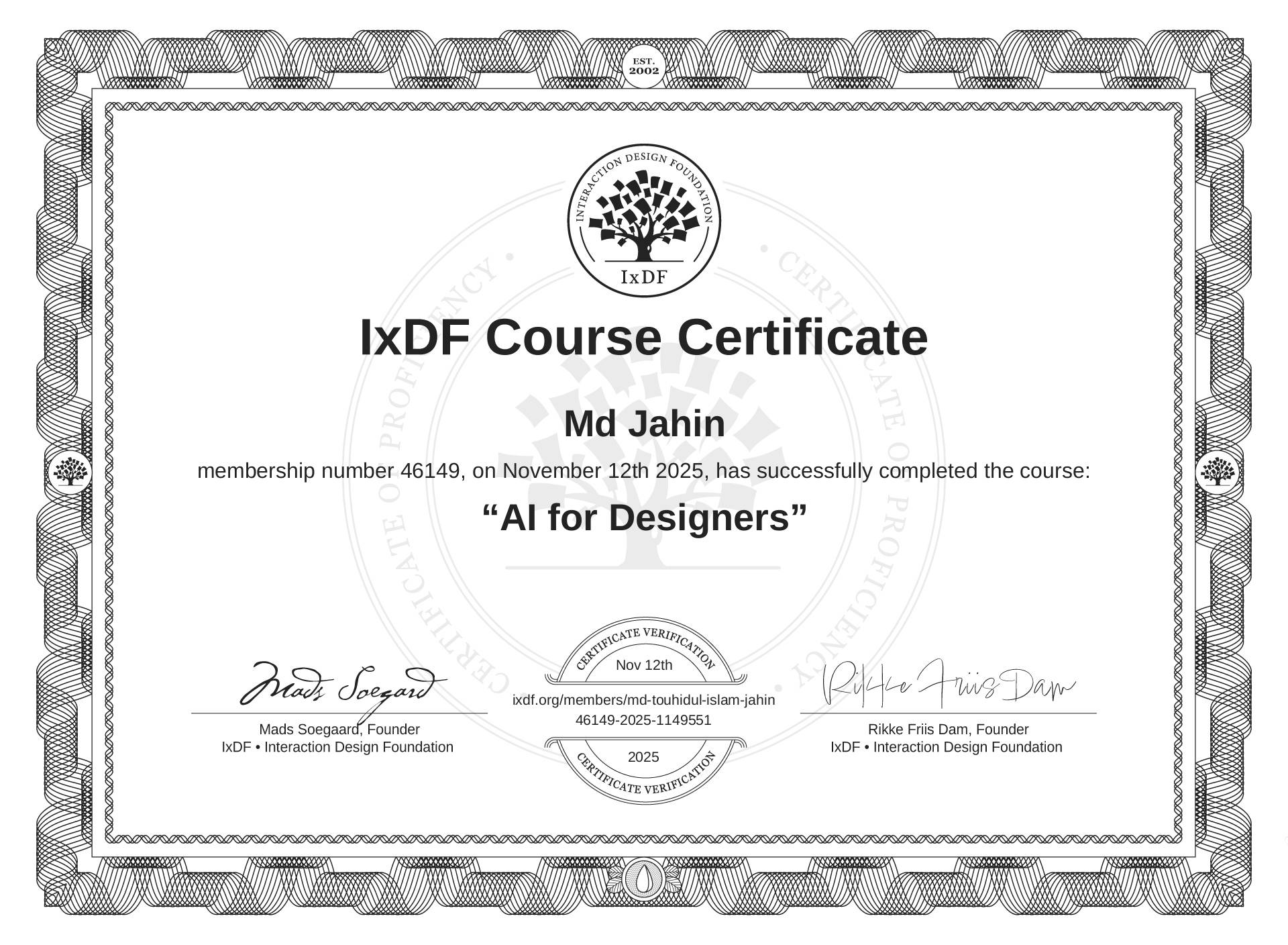 Md Jahin's IxDF Course Certificate: AI for Designers