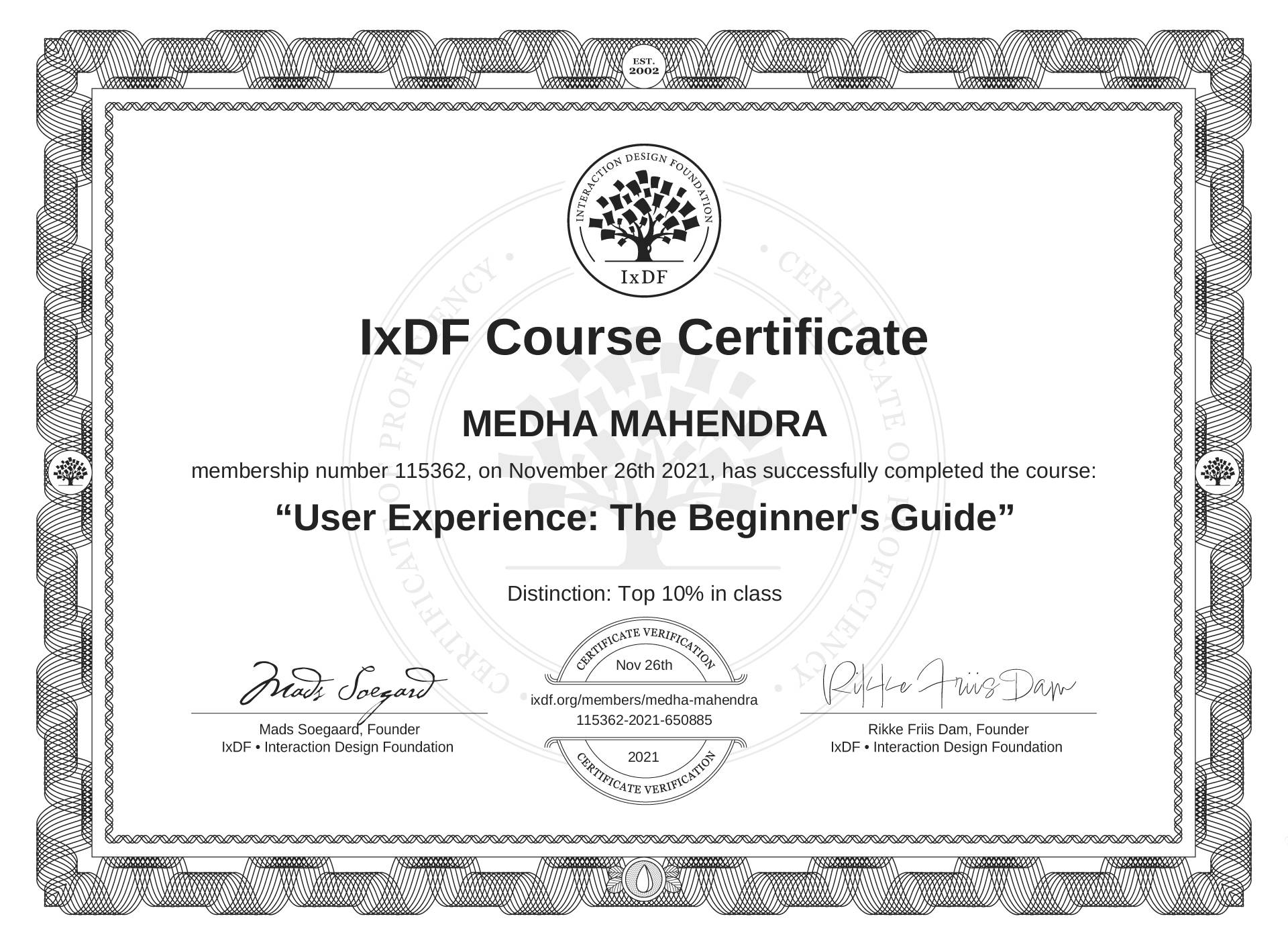 MEDHA MAHENDRA's IxDF Course Certificate: User Experience: The Beginner's Guide
