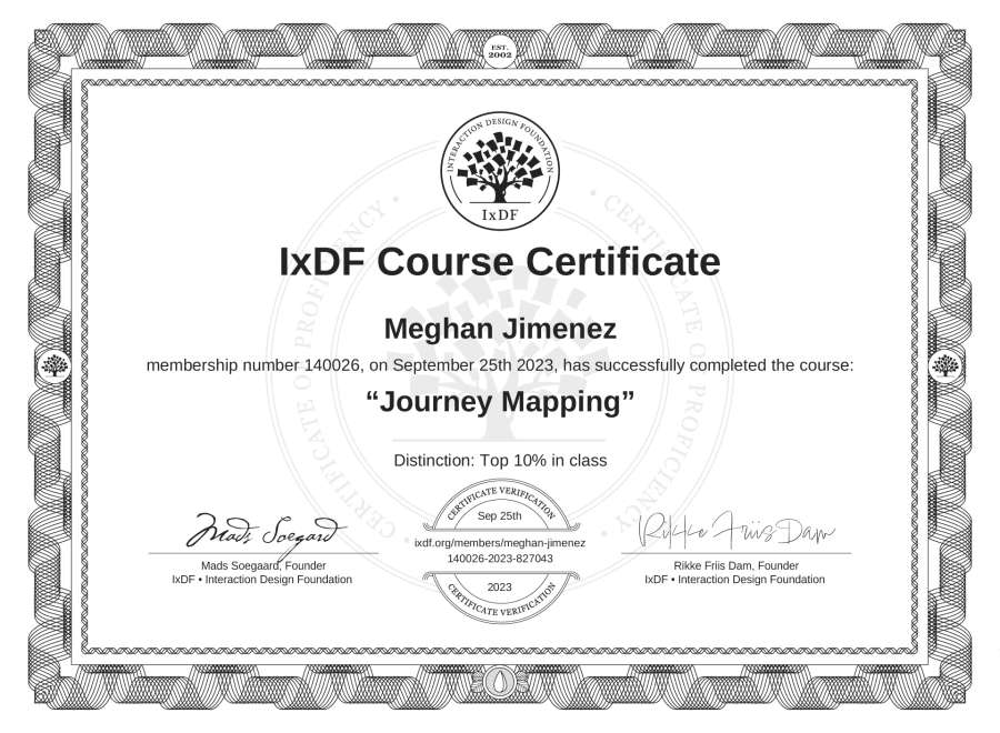 Meghan Jimenez's IxDF Course Certificate: Journey Mapping