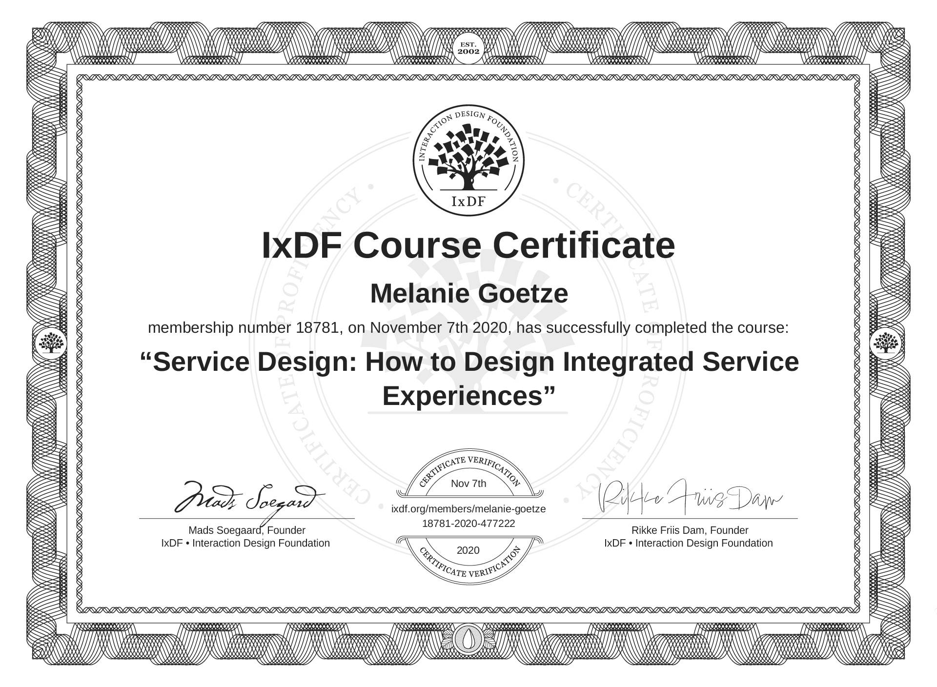 Melanie Goetze's IxDF Course Certificate: Service Design: How to Design Integrated Service Experiences