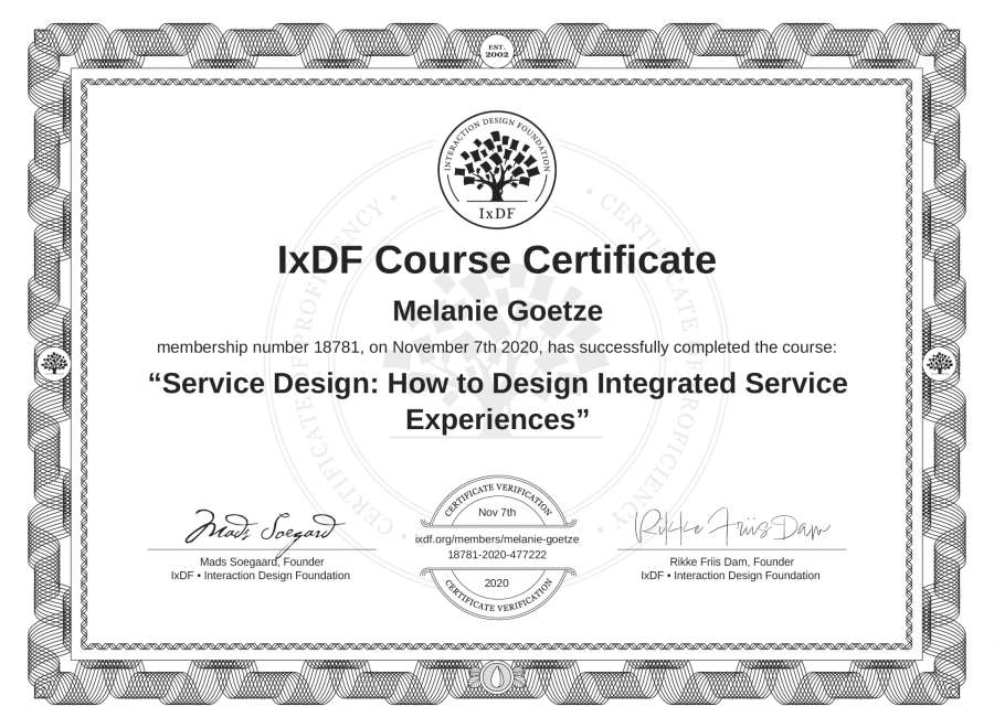 Melanie Goetze's IxDF Course Certificate: Service Design: How to Design Integrated Service Experiences