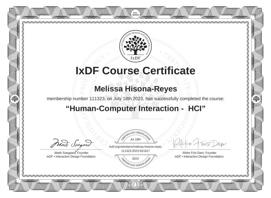 Melissa Hisona-Reyes's IxDF Course Certificate: Human-Computer Interaction - HCI