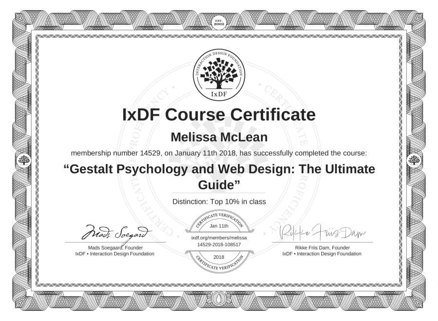 Melissa McLean's IxDF Course Certificate: Gestalt Psychology and Web Design: The Ultimate Guide