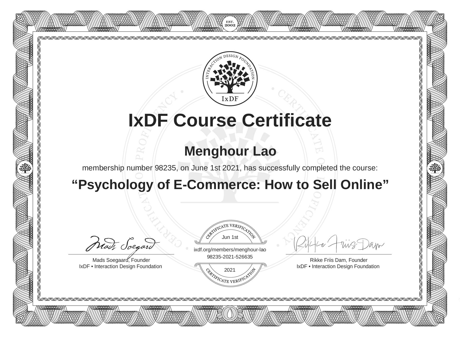 Menghour Lao's IxDF Course Certificate: Psychology of E-Commerce: How to Sell Online