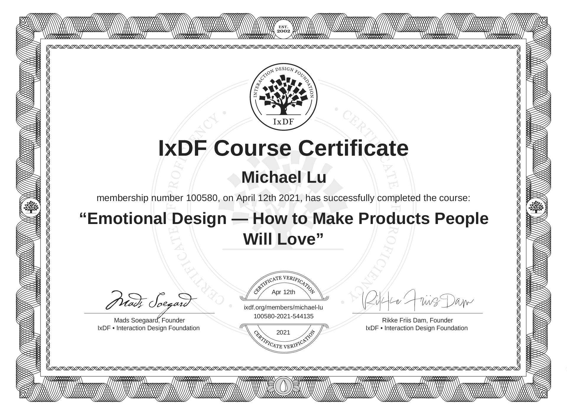 Michael Lu's IxDF Course Certificate: Emotional Design — How to Make Products People Will Love