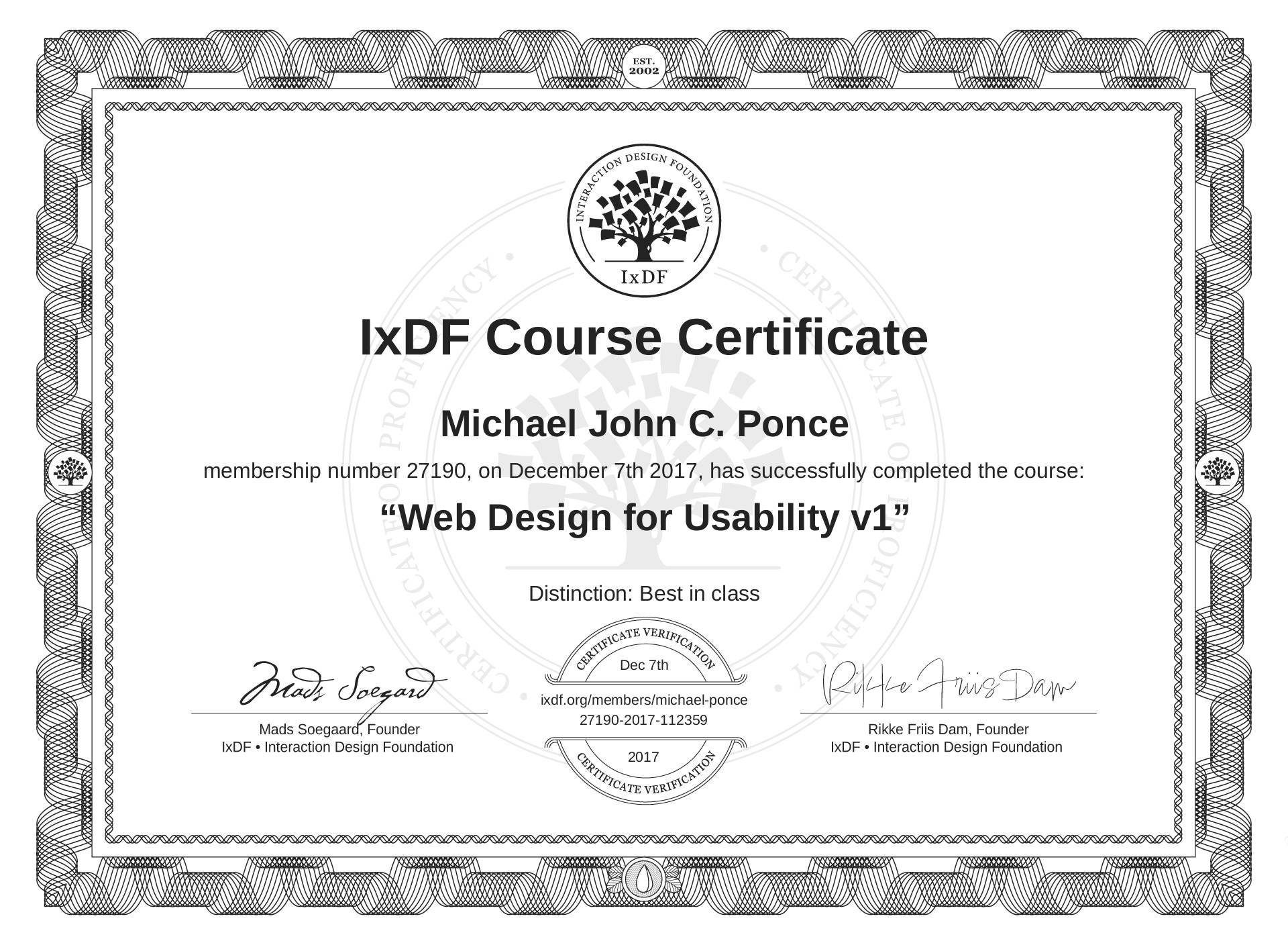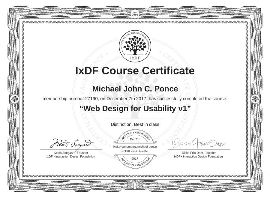 Michael John C. Ponce's IxDF Course Certificate: Web Design for Usability v1