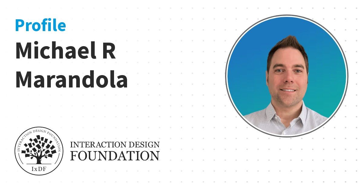 IxDF Course Certificates are awarded to Michael R Marandola in formal recognition of their coursework surpassing the rigorous benchmarks of exceptional performance established by the IxDF Educational Codex.