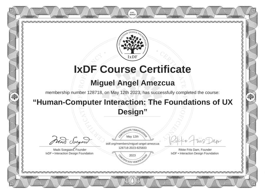 Miguel Angel Amezcua's IxDF Course Certificate: Human-Computer Interaction: The Foundations of UX Design