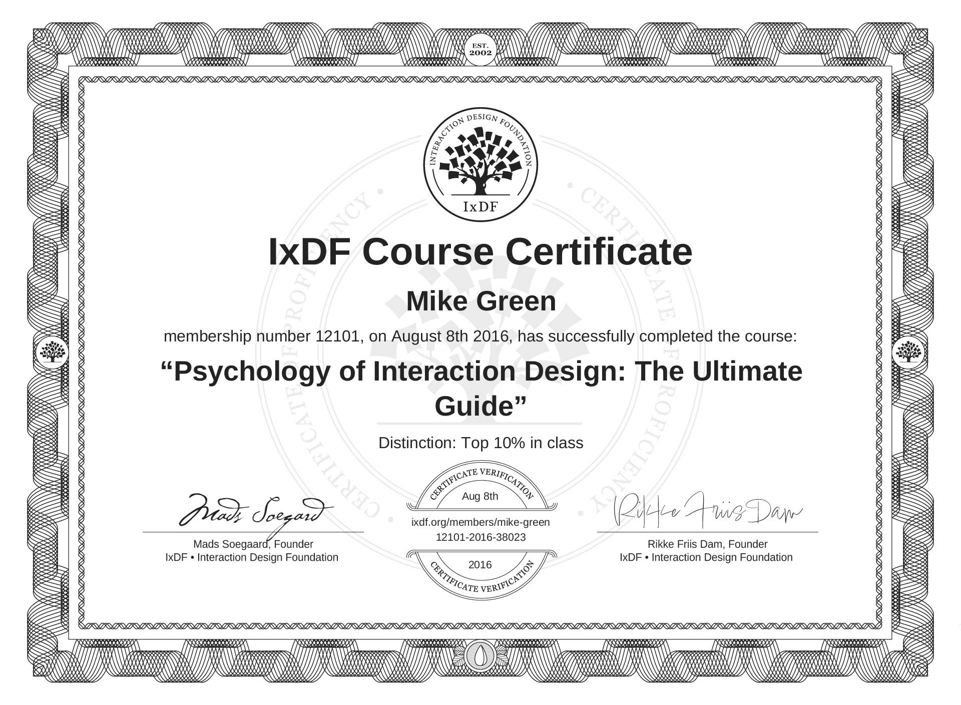Mike Green's IxDF Course Certificate: Psychology of Interaction Design: The Ultimate Guide