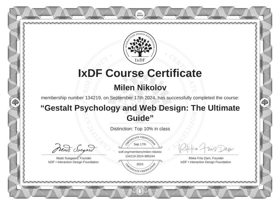 Milen Nikolov's IxDF Course Certificate: Gestalt Psychology and Web Design: The Ultimate Guide