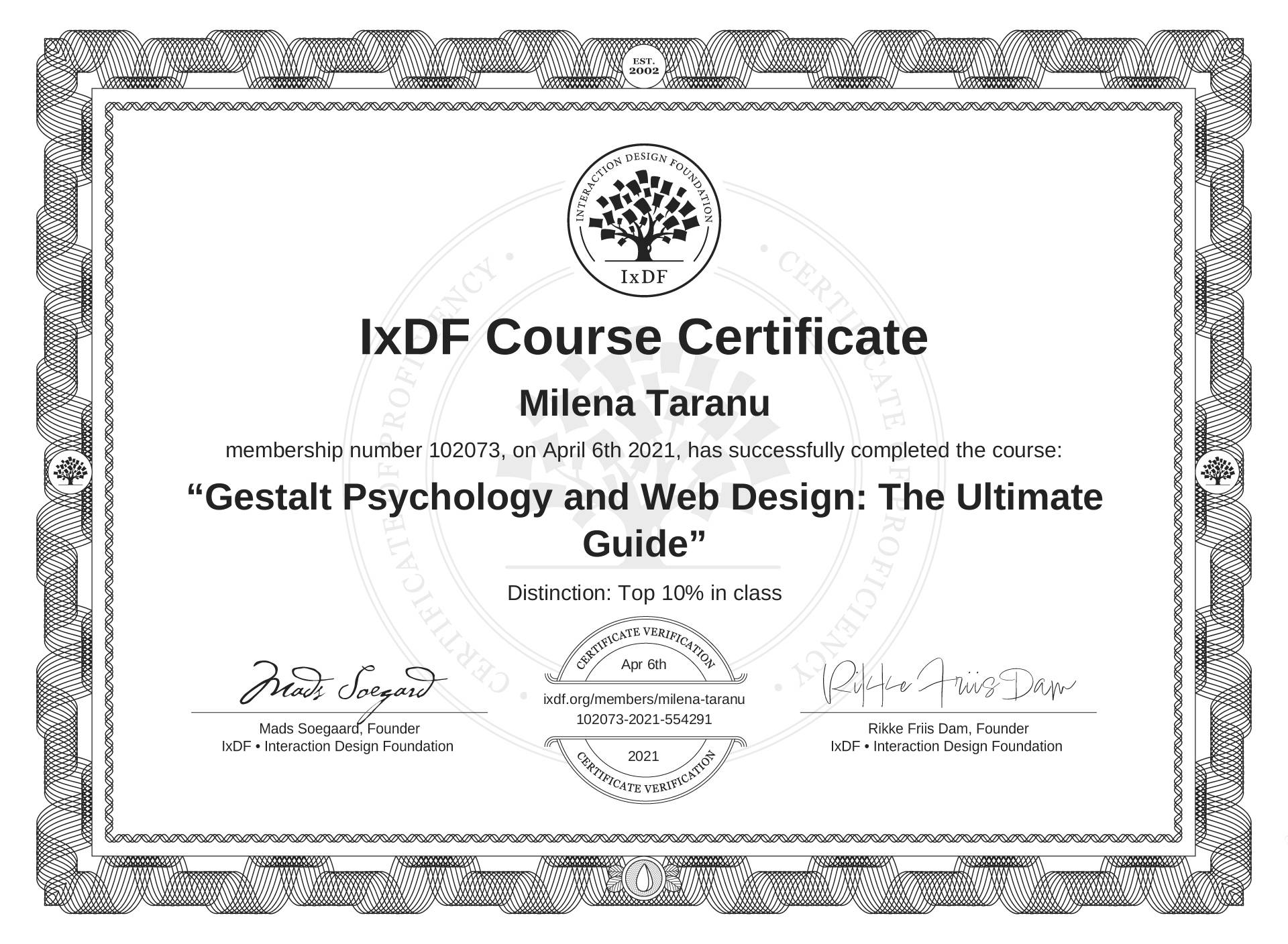 Milena Taranu's IxDF Course Certificate: Gestalt Psychology and Web Design: The Ultimate Guide