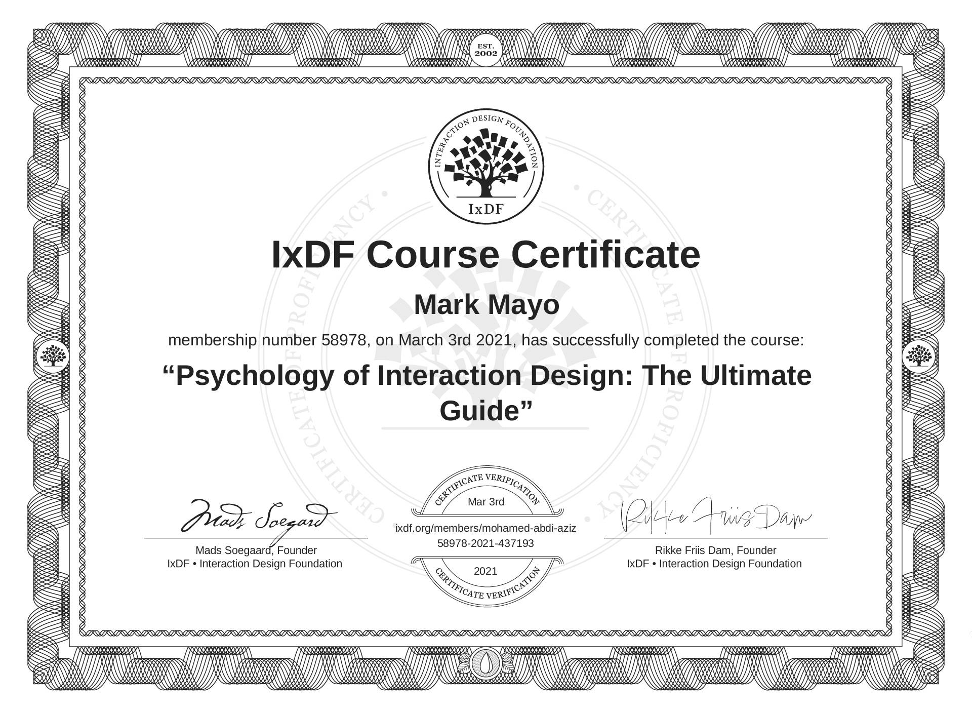 Mark Mayo's IxDF Course Certificate: Psychology of Interaction Design: The Ultimate Guide