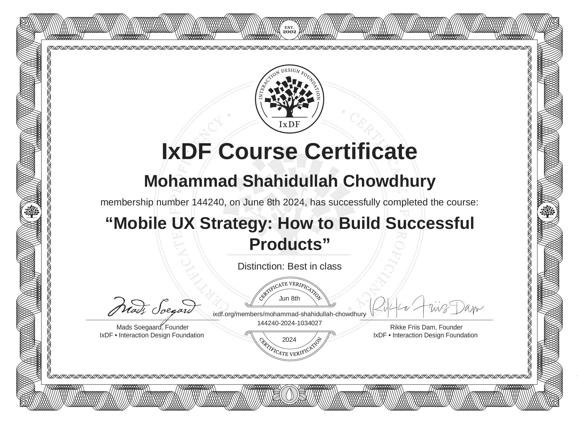 Mohammad Shahidullah Chowdhury's IxDF Course Certificate: Mobile UX Strategy: How to Build Successful Products