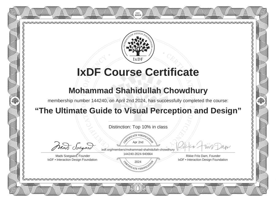 Mohammad Shahidullah Chowdhury's IxDF Course Certificate: The Ultimate Guide to Visual Perception and Design