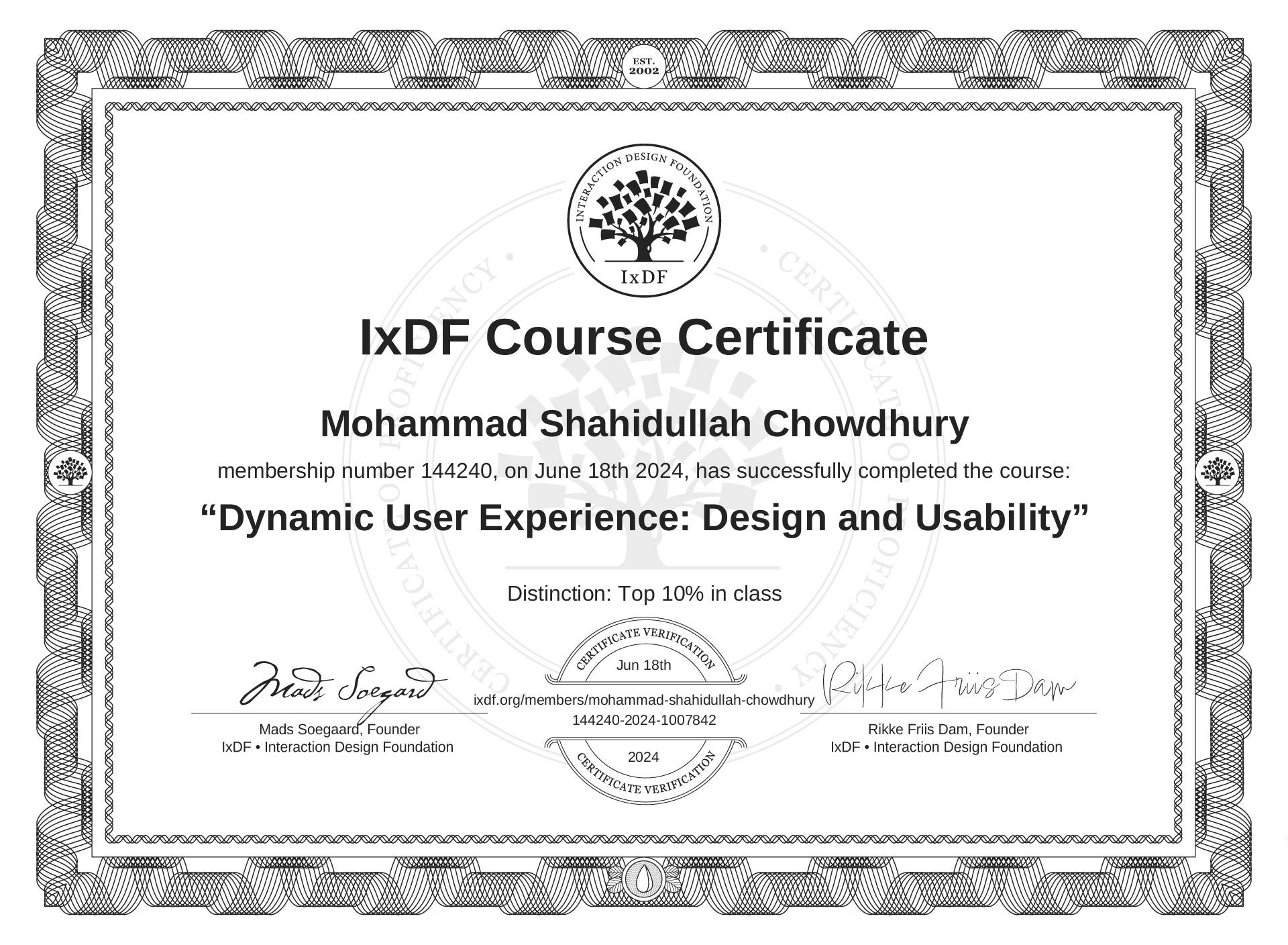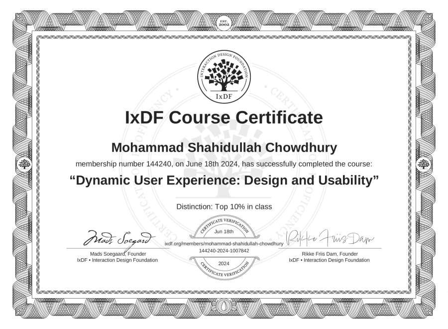 Mohammad Shahidullah Chowdhury's IxDF Course Certificate: Dynamic User Experience: Design and Usability