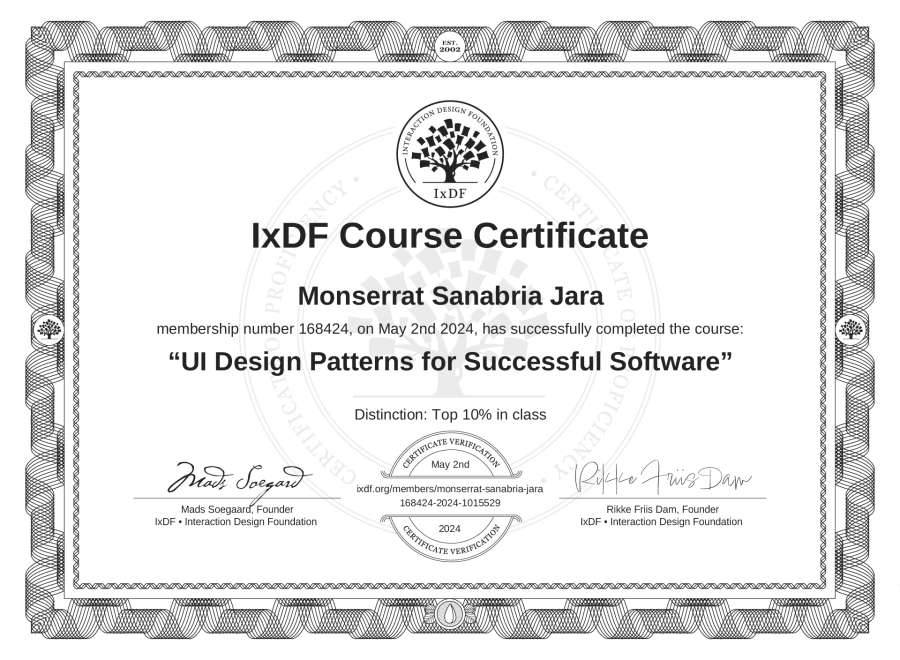 Monserrat Sanabria Jara's IxDF Course Certificate: UI Design Patterns for Successful Software