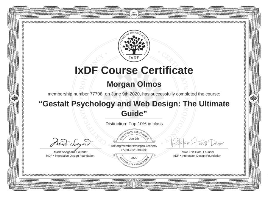Morgan Olmos's IxDF Course Certificate: Gestalt Psychology and Web Design: The Ultimate Guide
