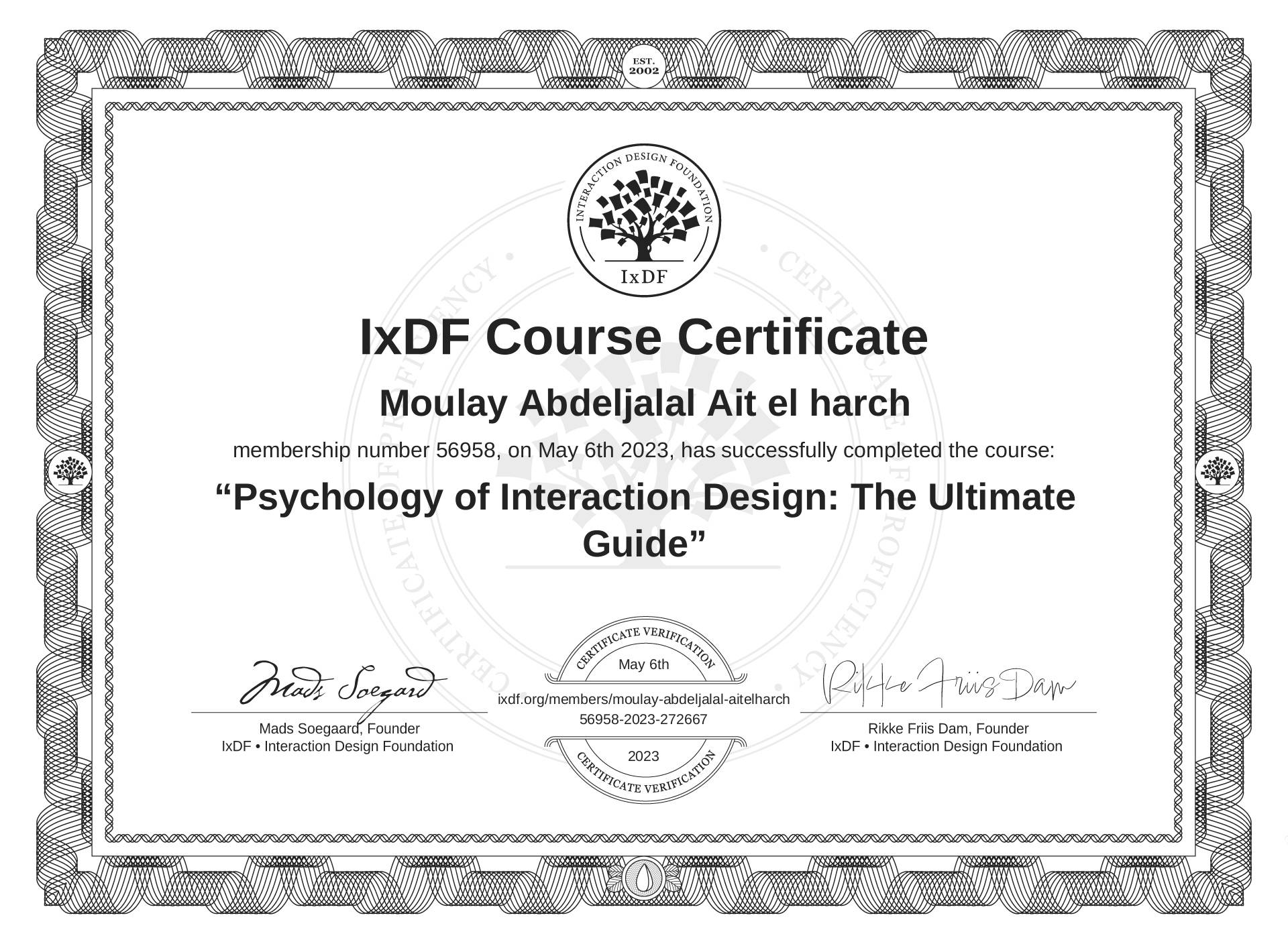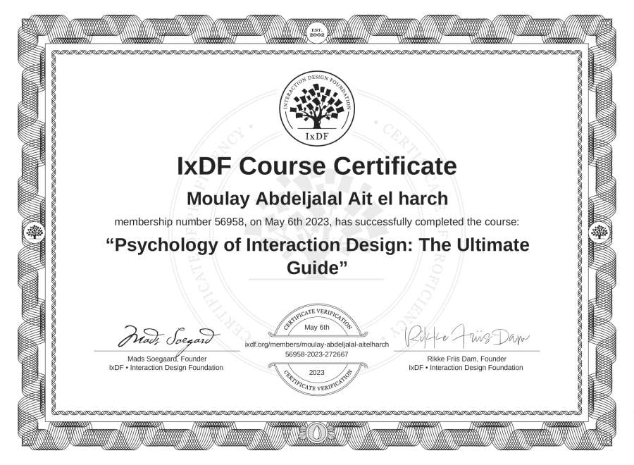 Moulay Abdeljalal Ait el harch's IxDF Course Certificate: Psychology of Interaction Design: The Ultimate Guide