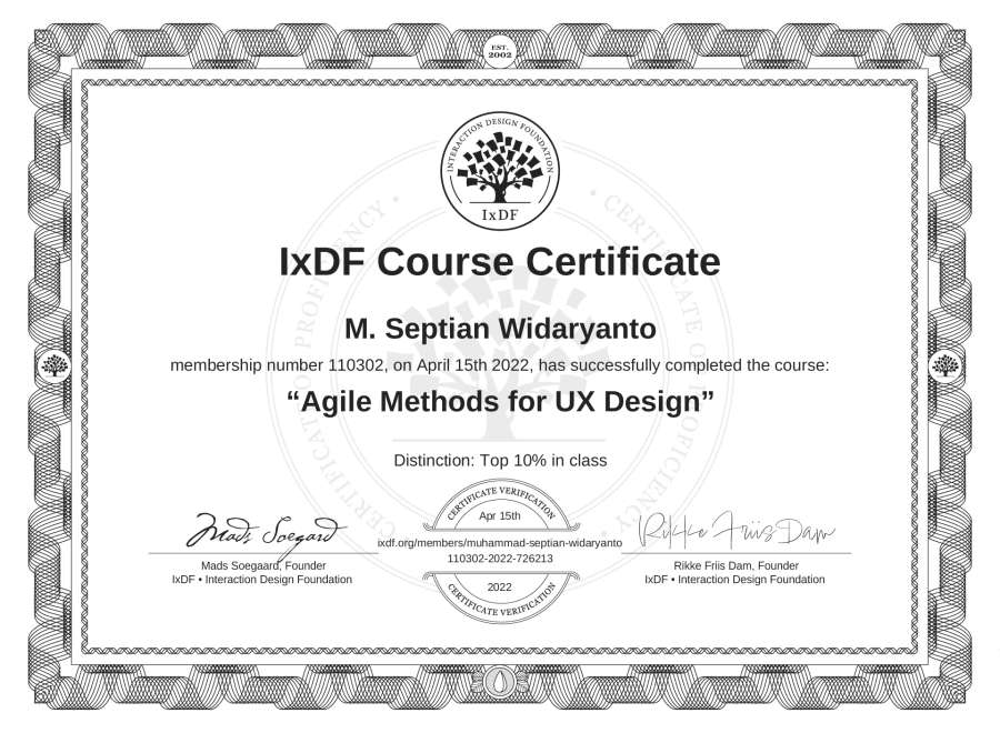 M. Septian Widaryanto's IxDF Course Certificate: Agile Methods for UX Design