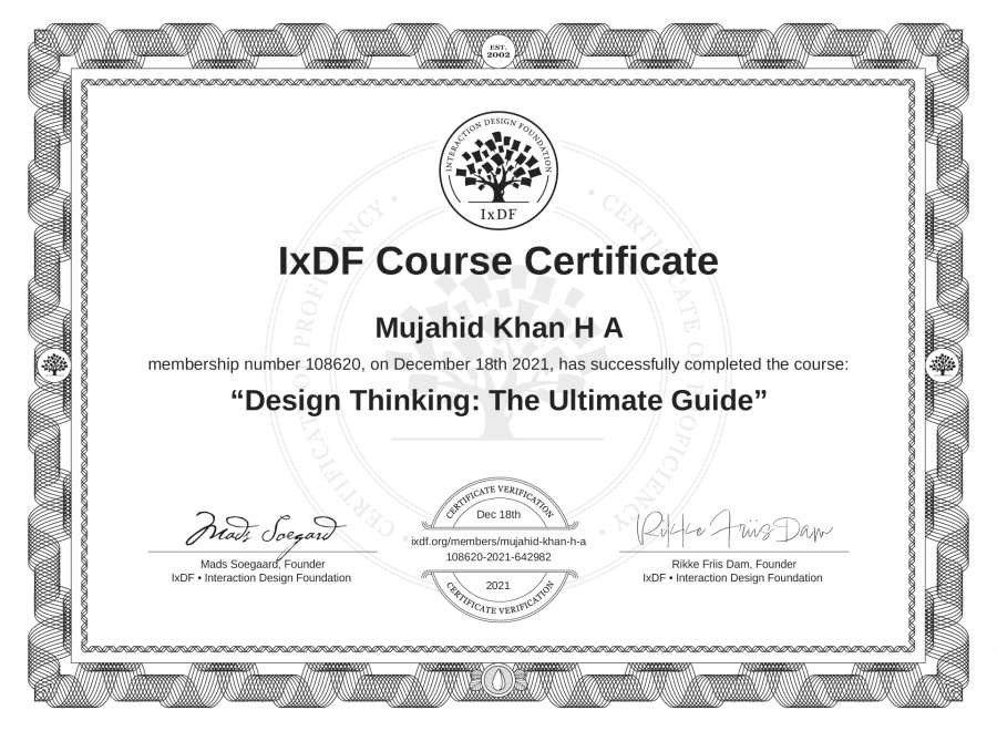 Mujahid Khan H A's IxDF Course Certificate: Design Thinking: The Ultimate Guide