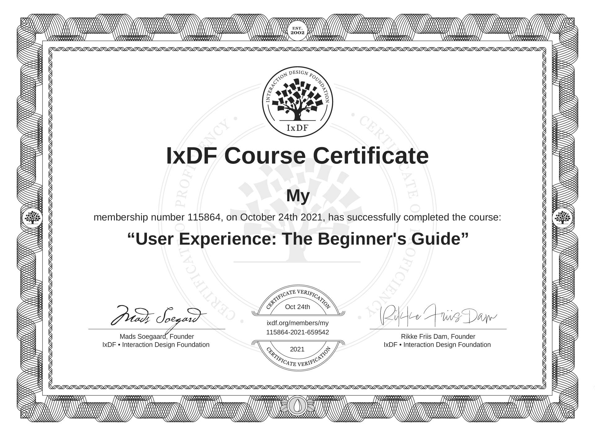 My's IxDF Course Certificate: User Experience: The Beginner's Guide
