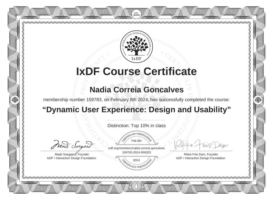 Nádia Correia Gonçalves's IxDF Course Certificate: Dynamic User Experience: Design and Usability