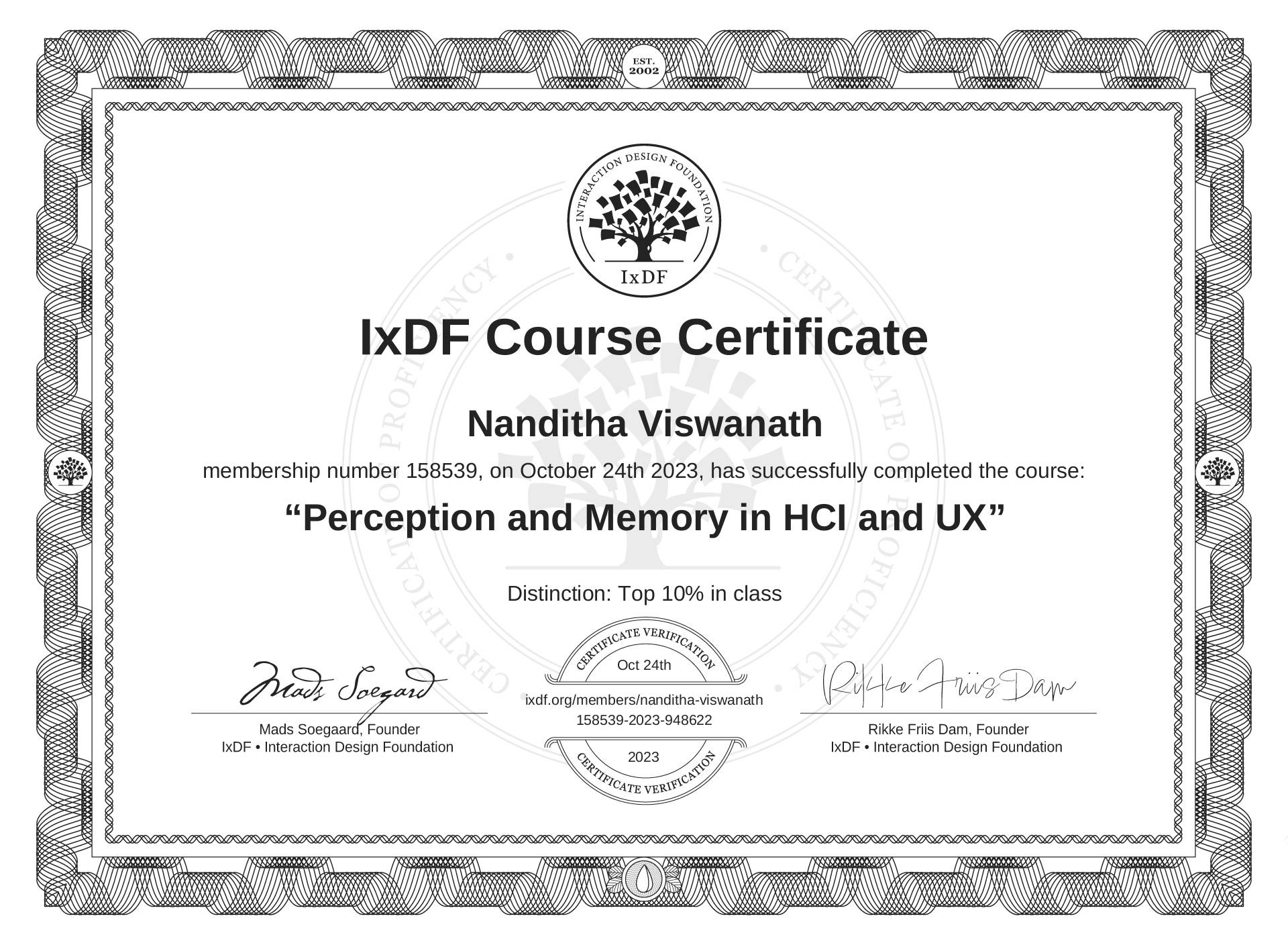 Nanditha Viswanath's IxDF Course Certificate: Perception and Memory in HCI and UX