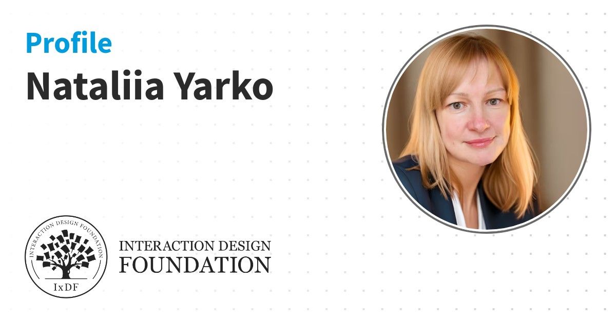 IxDF Course Certificates are awarded to Nataliia Yarko in formal recognition of their coursework surpassing the rigorous benchmarks of exceptional performance established by the IxDF Educational Codex.